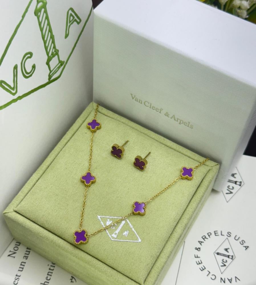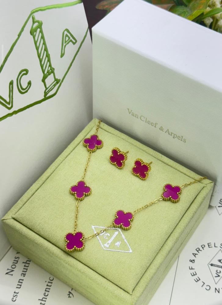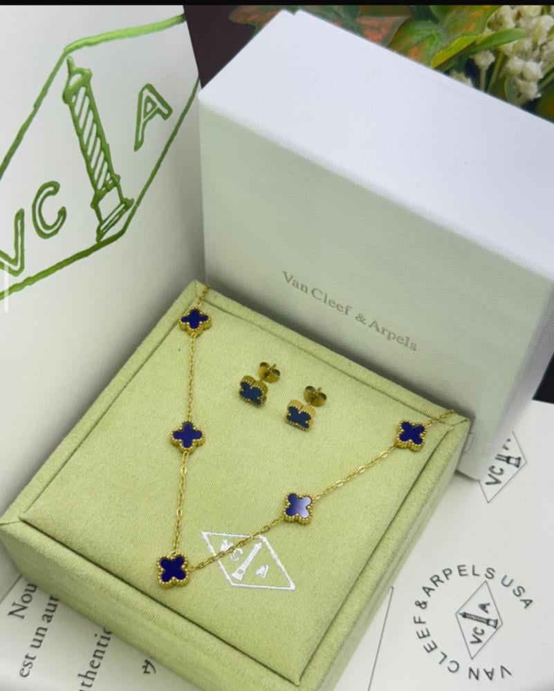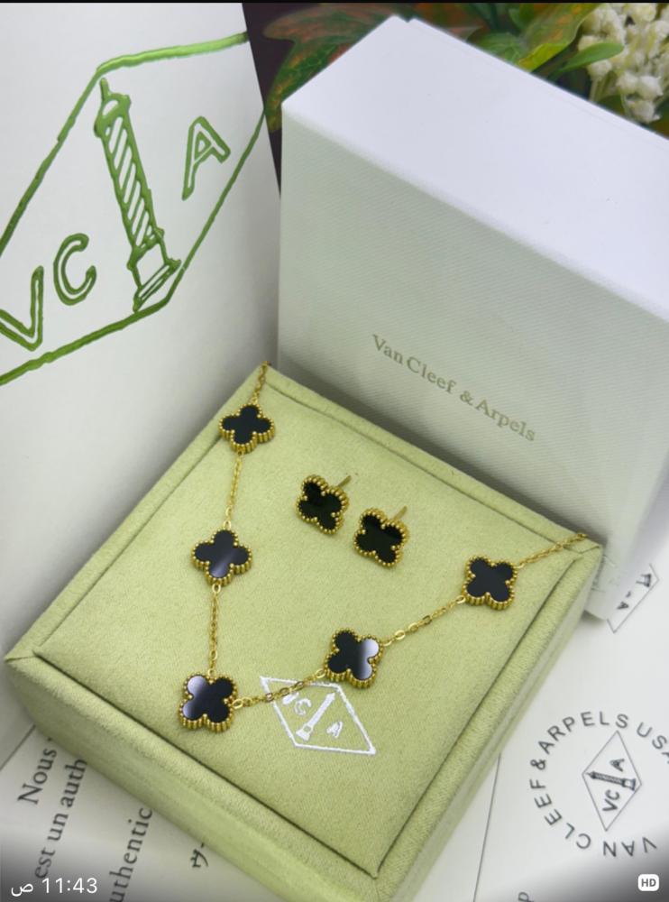 احصلي على طقم فان كليف الأنيق الذي يتألف من قلادة وحلق ماستر ليضفي على إطلالتك لمسة من الأناقة والرقي، ويتميز الطقم بتصميمه الراقي والجذاب، وخاصة بلونه الكحلي الرائع الذي يعتبر رمزًا للأناقة العصرية.